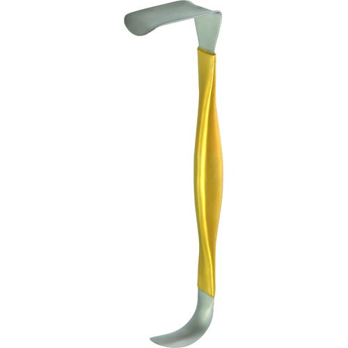 Breast retractor, double ended, retractor only, straight blade, serrated, 38 x 70 mm, curved blade, serrated 22 x 55 mm, length 31.5 cm/12½”