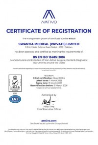 Swantia Medical (Pvt.) Limited is totally committed to today’s quality requirements. We comply to and are certified/registered for ISO 9001:2015, ISO 13485:2016, CE Directive (93/42/EEC & EU MDR 2017/745) and USA FDA QSR (cGMP).